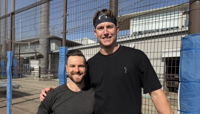 昨日来日した #レイノルズ 投手が早速ブルペン入り🔥
