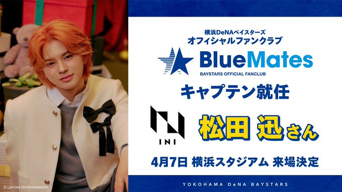 DeNA、INI・松田迅さんが「2026 BlueMatesキャプテン」に就任