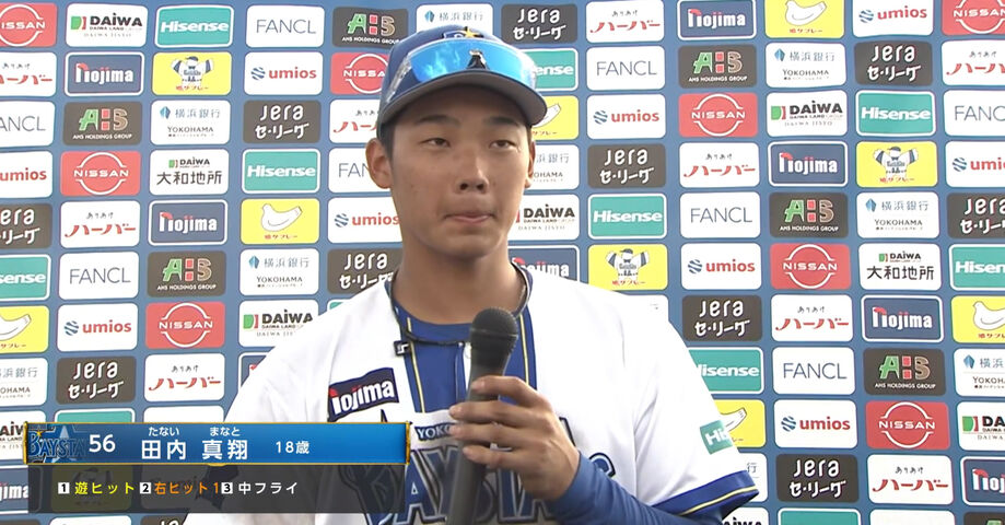 DeNA田内真翔、おじいちゃんと同じ「背番号56」で躍動も…初ヒロインで感謝の言葉をド忘れ!「全部飛んじゃいました」